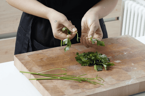 Tear off the leaves of the parsley and chop them finely.