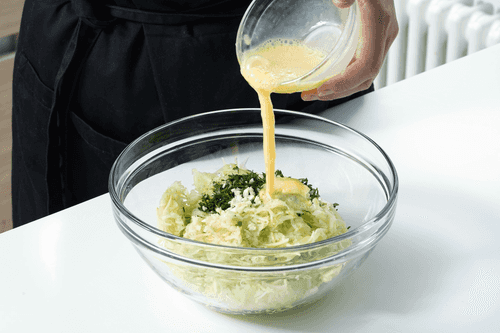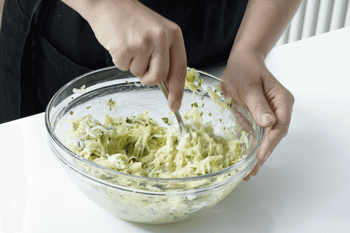 Beat the egg separately in a bowl with a fork and add it to the zucchini. Mix well.