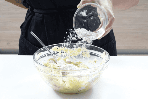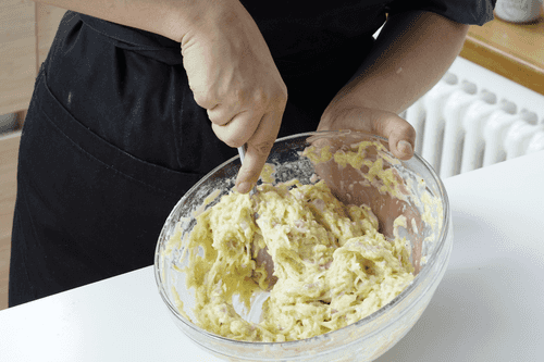 Beat the egg separately in a bowl with a fork and add it to the zucchini. Mix well.