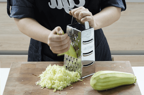 Beat the egg separately in a bowl with a fork and add it to the zucchini. Mix well.