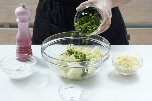 If you have time, you can salt them and leave for 10 minutes instead of squeezing; they will release excess moisture. If there's no time, immediately drain in a colander and squeeze well, gathering the pulp in handfuls.