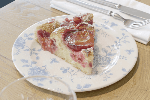 Bake the pie for 45 minutes at 165 degrees. Let the finished plum pie cool slightly before serving.