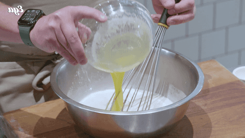 Prepare the dough. Whisk one egg with 150 grams of sugar until a pale homogeneous mass.