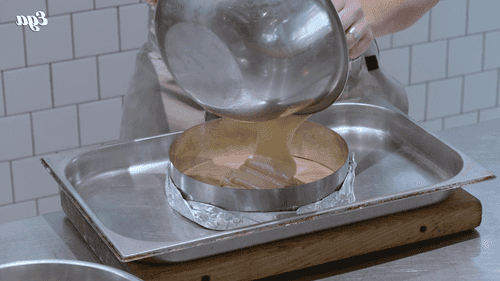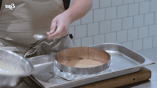 Pour the dough into the mold and spread it evenly on the bottom. Place it in the freezer for 30 minutes.