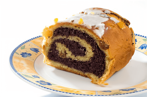 Poppy seed roll is a classic Hungarian dessert with a rich and intense flavor. Its history is rooted in Eastern European culinary traditions where poppy pastries have always held a special place. The delicate yeast dough made with milk, eggs, and butter makes it airy and soft. The aromatic poppy filling mixed with honey and sugar adds sweetness and a rich nutty-spicy taste. This roll is perfect as festive baking or a cozy treat for tea. Its unique texture and balance of sweetness make it an essential addition to family gatherings. When served, it is sliced into neat pieces and dusted with powdered sugar for an elegant touch. Popular in Hungary and beyond, it remains a favorite among traditional pastry lovers.
