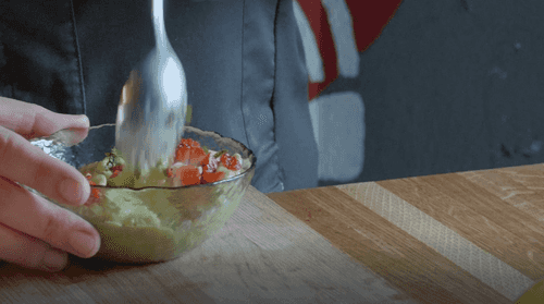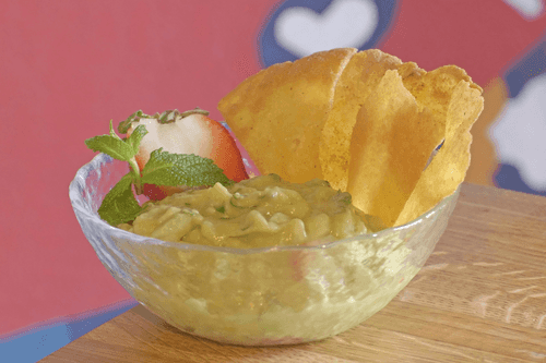 Serve with corn chips. But you can also eat it just with a teaspoon.