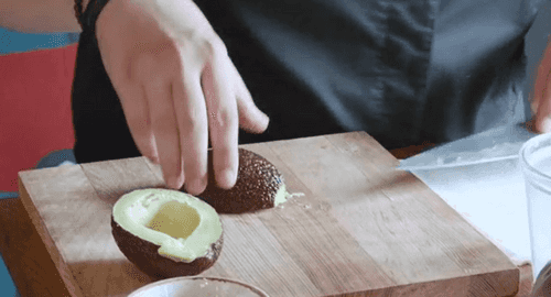Put the avocado in the blender bowl. Also add one third of a banana.