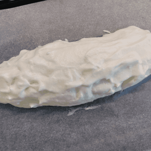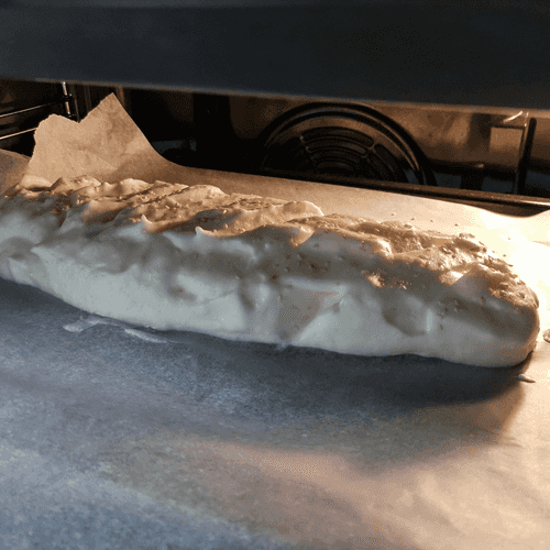 Form the mixture into ciabatta shape on baking paper.