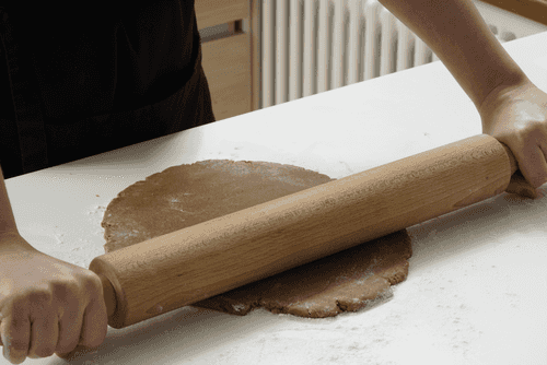 Once the dough comes together, place it on a floured surface. Roll out the dough to a thickness of 5 mm. If the dough is too soft to roll, let it rest in the refrigerator for 15-20 minutes.