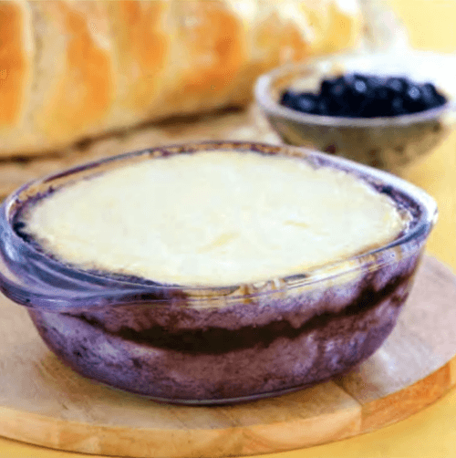 Layer half of the porridge, blueberries with sugar, and the remaining porridge, smoothing it out.