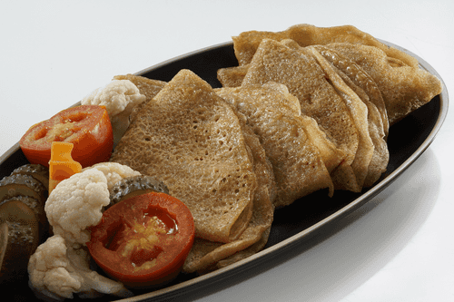 Eggless and milkless buckwheat pancakes are a dish infused with the spirit of Russian cuisine and fasting traditions. Buckwheat flour gives them a delicate nutty flavor, while the use of mineral water makes the batter airy and porous. These pancakes are perfect for those following a plant-based diet or looking for a light and healthy version of a traditional dish. Their thin texture and slightly crispy crust harmonize well with sweet and savory fillings. They particularly reveal their flavor in tandem with pickled vegetables, creating a contrast between the softness of the batter and the spiciness of the additions. The simplicity of ingredients and preparation makes this recipe accessible, while the result is exquisite, reminiscent of culinary wisdom from the past.