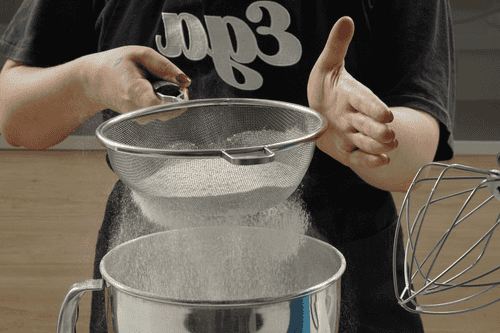 Sift flour into the bowl with eggs, add a pinch of salt, and mix well.