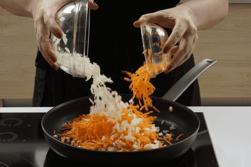 Fry the carrots and onions in vegetable oil until soft.