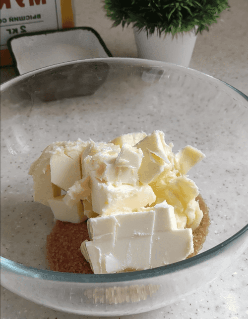 Add softened butter to the brown sugar.