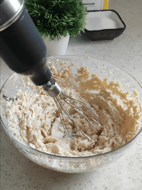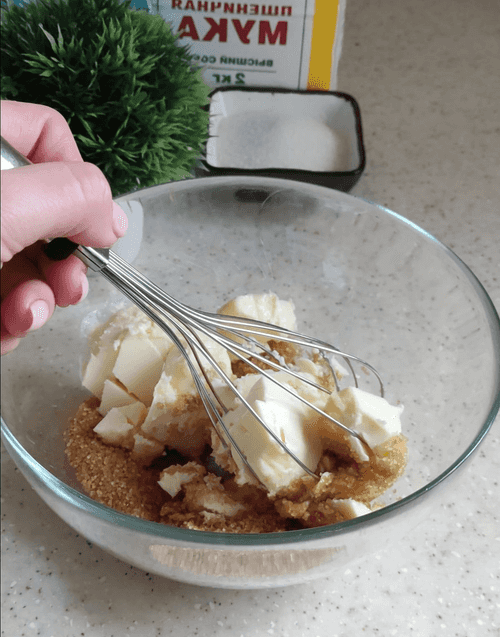 First, it is necessary to gently mix the sugar into the butter with a whisk.