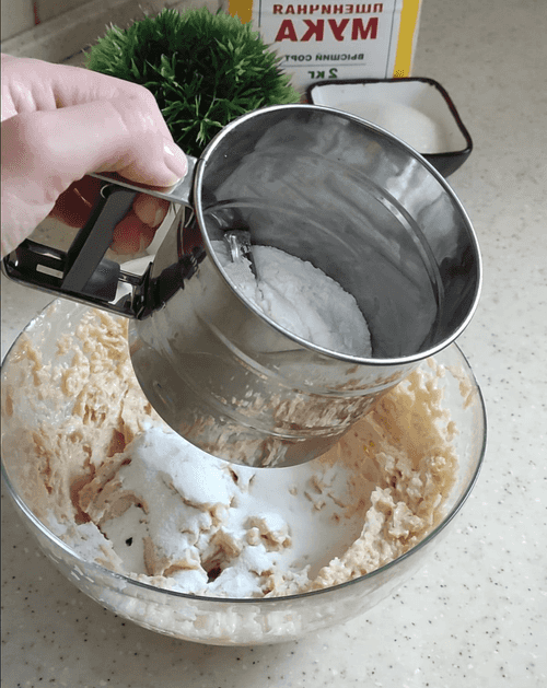 Sift rice flour into the obtained oily mass. If there is no ready flour, you can make it yourself by grinding rice in a coffee grinder.