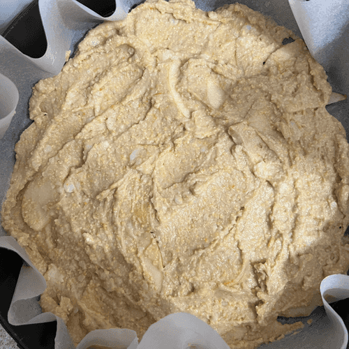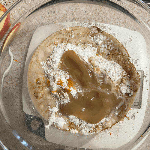 Spread the dough evenly over the apples.