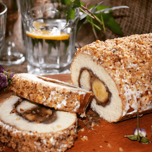 Banana-filled roll is a delicate and airy treat with a rich fruity flavor and spicy notes of cinnamon. Its roots trace back to traditional European desserts where thin sponge layers are filled with sweet fillings. This roll combines the softness of the sponge with the natural sweetness of bananas, creating a harmony of flavors. Easy to prepare, it is perfect for cozy tea time or festive gatherings. The taste is soft, creamy, with a light caramel sweetness of banana complemented by the warmth of cinnamon. The elastic and flexible layer smoothly envelops the filling, creating an ideal texture. It can be served with a scoop of ice cream or fresh berries for added contrast and brightness. This dessert will not only delight gourmets but also provide a sense of comfort and home warmth.