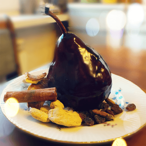 After that, remove the pears with a slotted spoon and set aside to cool. Reduce the remaining wine in the pot until it thickens slightly. This will be the sauce.