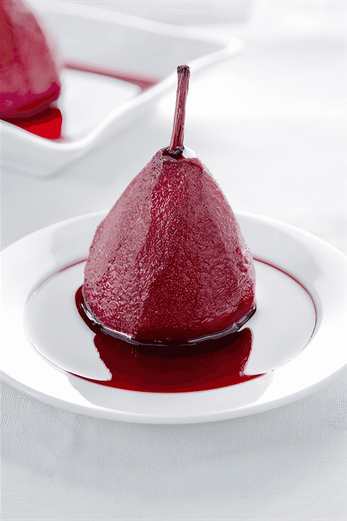 Pears in red wine are an elegant dessert of Spanish cuisine that embodies sophistication and simplicity. This recipe is rooted in European culinary traditions where fruits are often simmered in aromatic syrups and wines. Here, ripe pears slowly soak up a bouquet of spices—cinnamon, clove, and vanilla—that reveal depth of flavor and add a noble touch. Simmering in dry red wine gives the fruits a rich ruby color and delicate texture. The finishing touch is a light dusting of powdered sugar and chilling, making them particularly refreshing. This dessert not only looks exquisite on the table but also offers a harmony of flavors: sweetness, the wine's tartness, and spicy notes from the spices. The pears are served chilled with sour cream on the side to enjoy the contrast of textures and aromas.