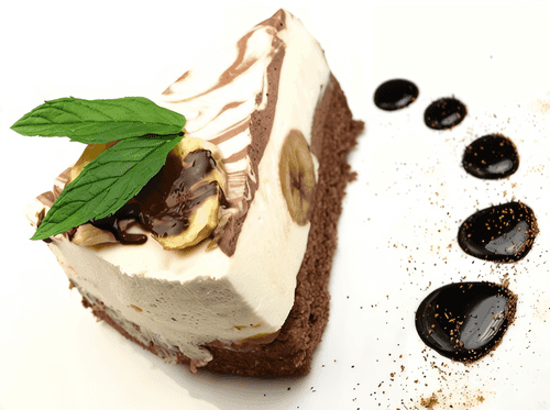 American cheesecake with bananas is a harmony of classic and exotic flavors. The roots of this dessert trace back to New York, where the famous creamy cheesecake originated. In this version, the delicate cheese base is complemented by caramelized bananas that add warm tropical notes to the dessert. Whiskey infused with raisins adds depth of flavor, while maple syrup brings sweet sophistication. Baked in a water bath, the cheesecake achieves a velvety texture while maintaining airiness and lightness. This dessert is perfect for cozy evenings as well as festive celebrations. A garnish of fresh bananas and mint completes the flavor symphony, transforming a simple cheesecake into a refined gastronomic delight.