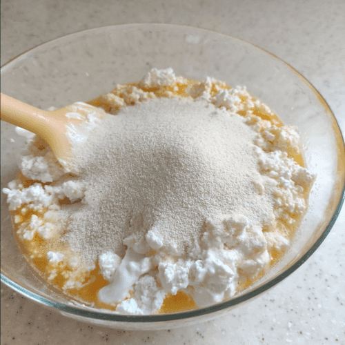 Place the cottage cheese mixture in a baking dish and spread it evenly.