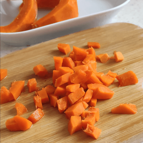 Cut the pumpkin into small cubes. This way it will cook faster.