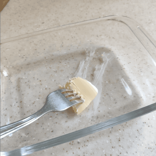 Grease the baking dish with butter.