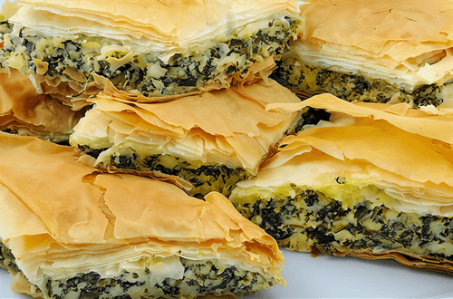 Layered pie with spinach and asparagus