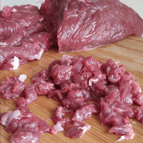 Cut the beef into small cubes.