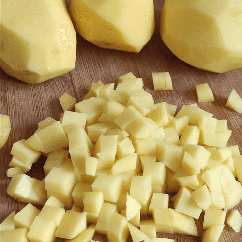 Cut the potatoes into 1 cm cubes.