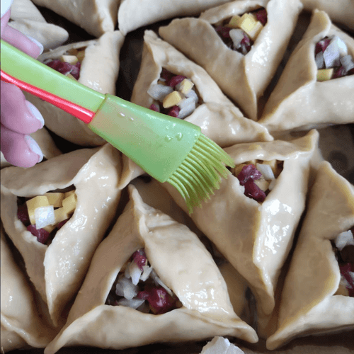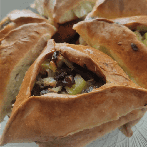 Echpochmak is a true embodiment of Tatar cuisine, a symbol of home comfort and warm family evenings. This triangular pastry with beef and potatoes combines tender dough with juicy meat filling infused with the aromas of cumin and pepper. Historically, echpochmaks were baked in ovens, and their open center allowed broth to seep into the filling, giving it extra softness and richness. The dish is perfect for a festive table or a cozy dinner, filling the home with appetizing aromas. It is best served hot when the dough remains crispy and the filling is tender and juicy.