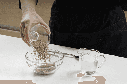 Mix flaxseed flour and 80 ml of water. Stir and let it sit for 15 minutes.