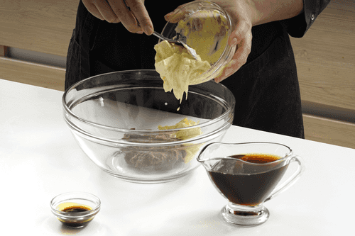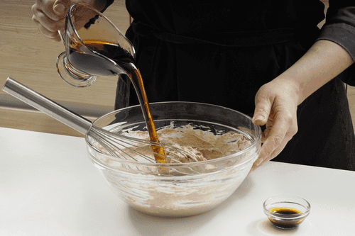 Add the oil mixture to the dry ingredients, mixing the dough with a silicone spatula.
