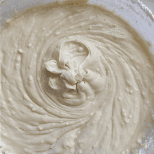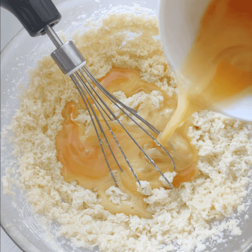 Beat the eggs lightly in a separate bowl and gradually pour them into the cream mixture, mixing well after each portion.