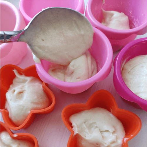 Place the batter in a mold, filling it about halfway (the batter will double in size while baking). Preheat the oven to 180 degrees and bake for 35–40 minutes. Check readiness by piercing the cake with a wooden skewer or toothpick - it should come out dry.