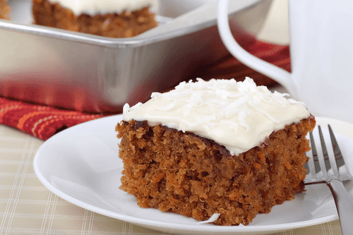 Mix eggs with carrots, add finely chopped nuts, coconut flakes, and vegetable oil.