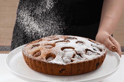 Let the pie rest in the mold for 15-20 minutes, then remove it from the mold. Cool to room temperature. When serving, sprinkle with powdered sugar if desired.
