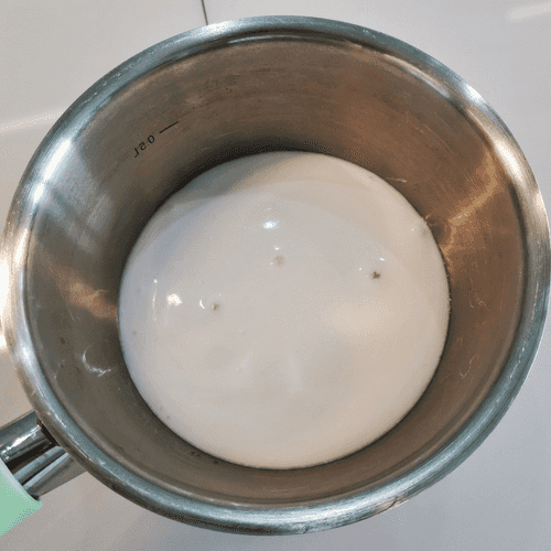 Once the milk is heated to 70–80 degrees, remove from heat and pour into a convenient container. Place in the refrigerator for 2 hours.