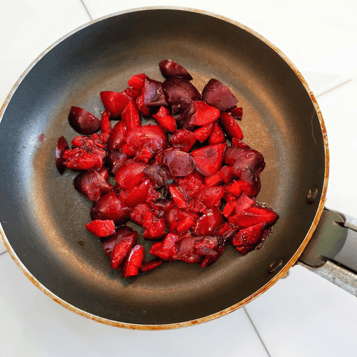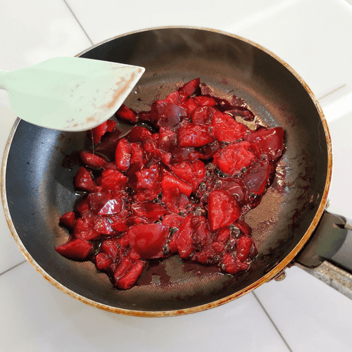 After 2-3 minutes, add erythritol (or sugar) and stir.