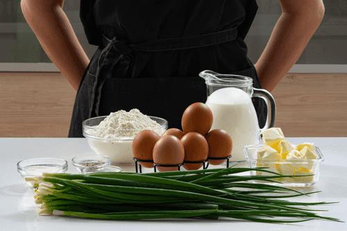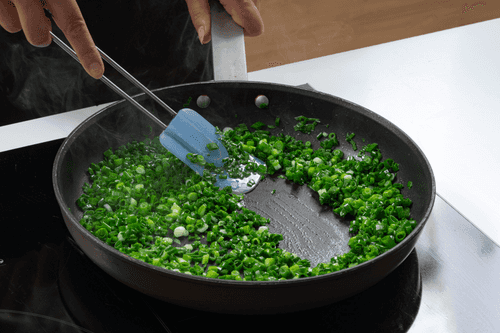 Melt 30 grams of butter in a pan and lightly sauté green onions in it.