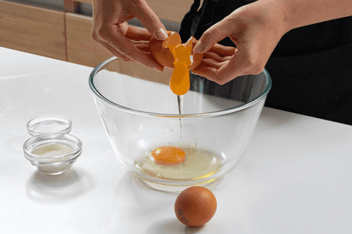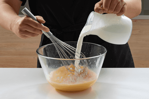 Dissolve baking soda in kefir and mix with beaten eggs.