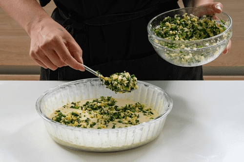Cover the filling with the remaining half of the dough and send it to a preheated oven at 180 degrees for 20 minutes.