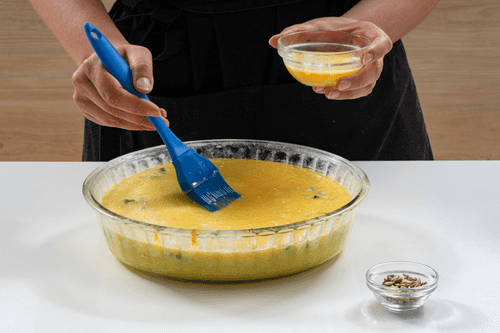 Beat the egg and brush it on top of the pie. Optionally sprinkle the pie with seeds. Return the pie to the oven for another 20 minutes or until the crust is dark golden.