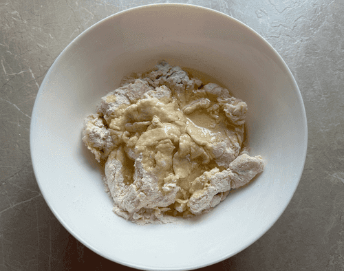 Mix the dough with a spatula.
