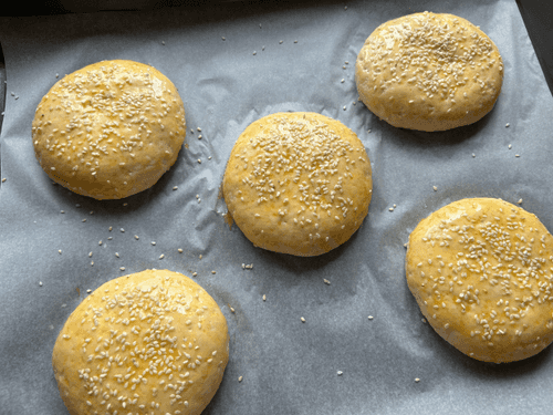 Brush with egg yolk and sprinkle with sesame.