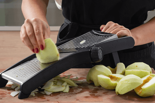 Slice the apples thinly on a mandoline: the thinner the slices, the better.