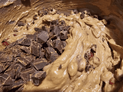 Chop the chocolate into small pieces, add to the dough, and gently mix to avoid crushing the lingonberries.