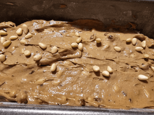 Place the mass in a mold and decorate with the nuts saved for decoration.