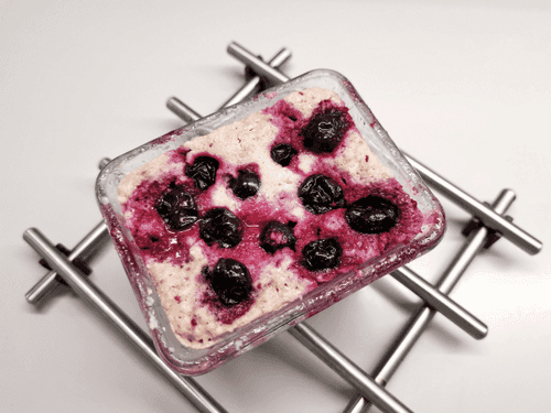 Add a few more berries on top and send it to the microwave. Cooking time depends on the device's power (from 1 to 3 minutes).
